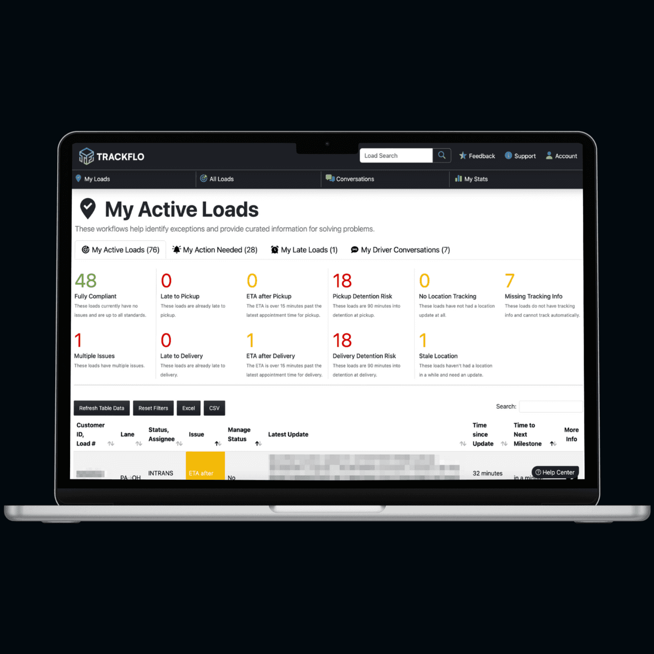 Your exceptions are custom to your organization and can be updated at any time. Once you click on an exception, the full table filters and you can deep dive loads one at a time.